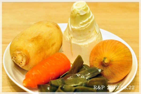 材料:一條蘿蔔(沏成角狀,蘿蔔要煮滿久的,所以別切太大,ㄧ條約$15還是$25??)