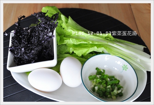 1.紫菜 2.蛋 3.小白菜 4.蔥花 5.隱藏版堅魚粉(其實是沒拍到)